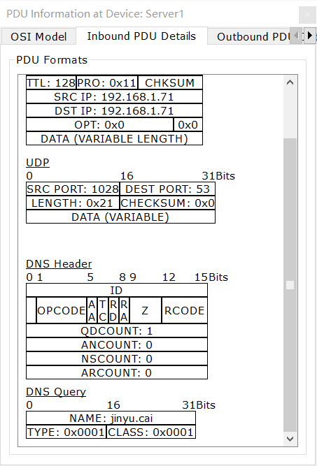 TC:占1位,1/8字节。因为一个UDP报文为512字节,所以该位指示是否截掉超过的部分