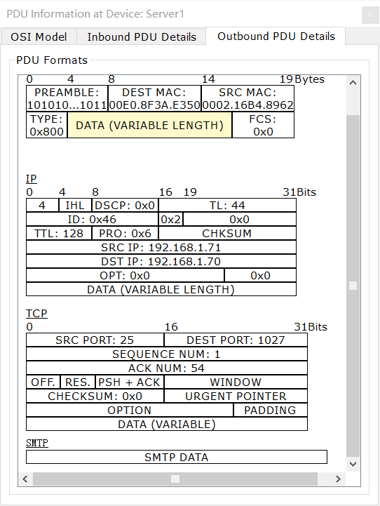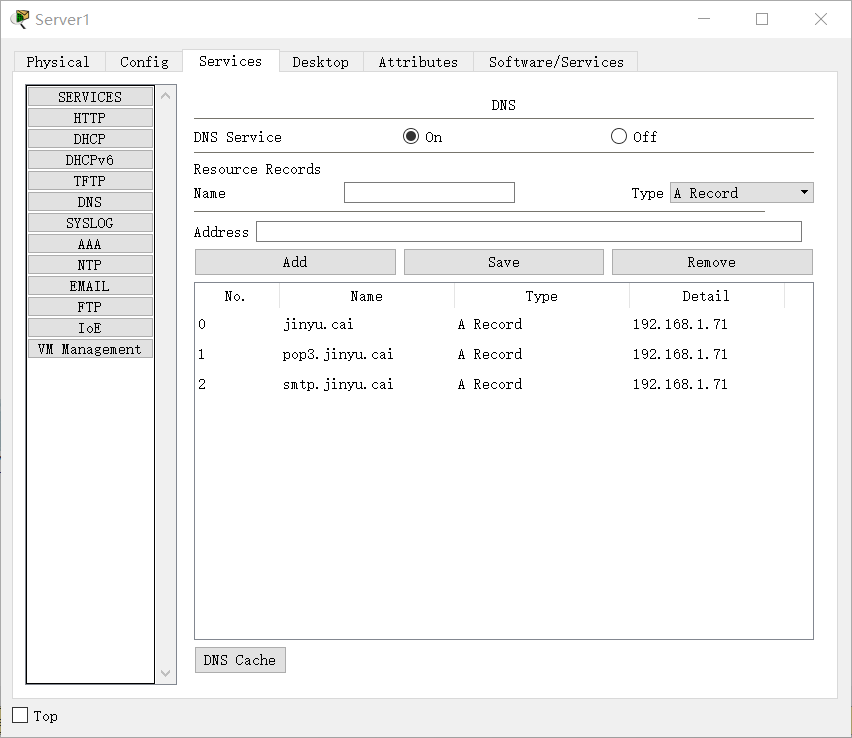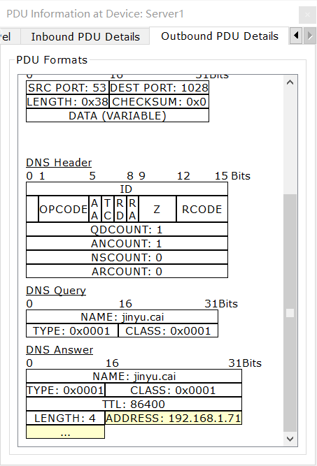 使用Packet Tracer,正确配置网络参数,抓取应用层协议的数据包并分析,协议包含DNS、FTP, DHCP, stmp, pop3。步骤包含: