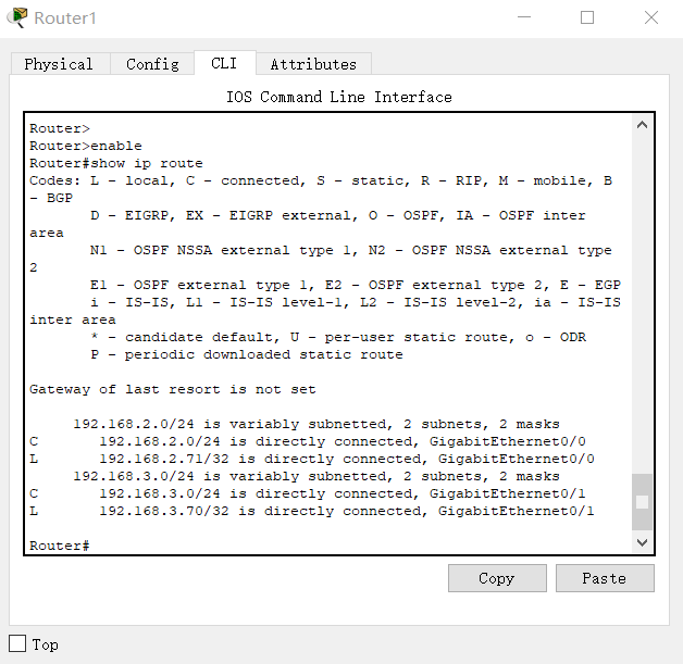 - L 192.168.2.71/32 is directly connected, GigabitEthernet0/0 :192.168.2.71是直连的地址,要转发数据包到这一地址,通过GigabitEthernet0/0 接口