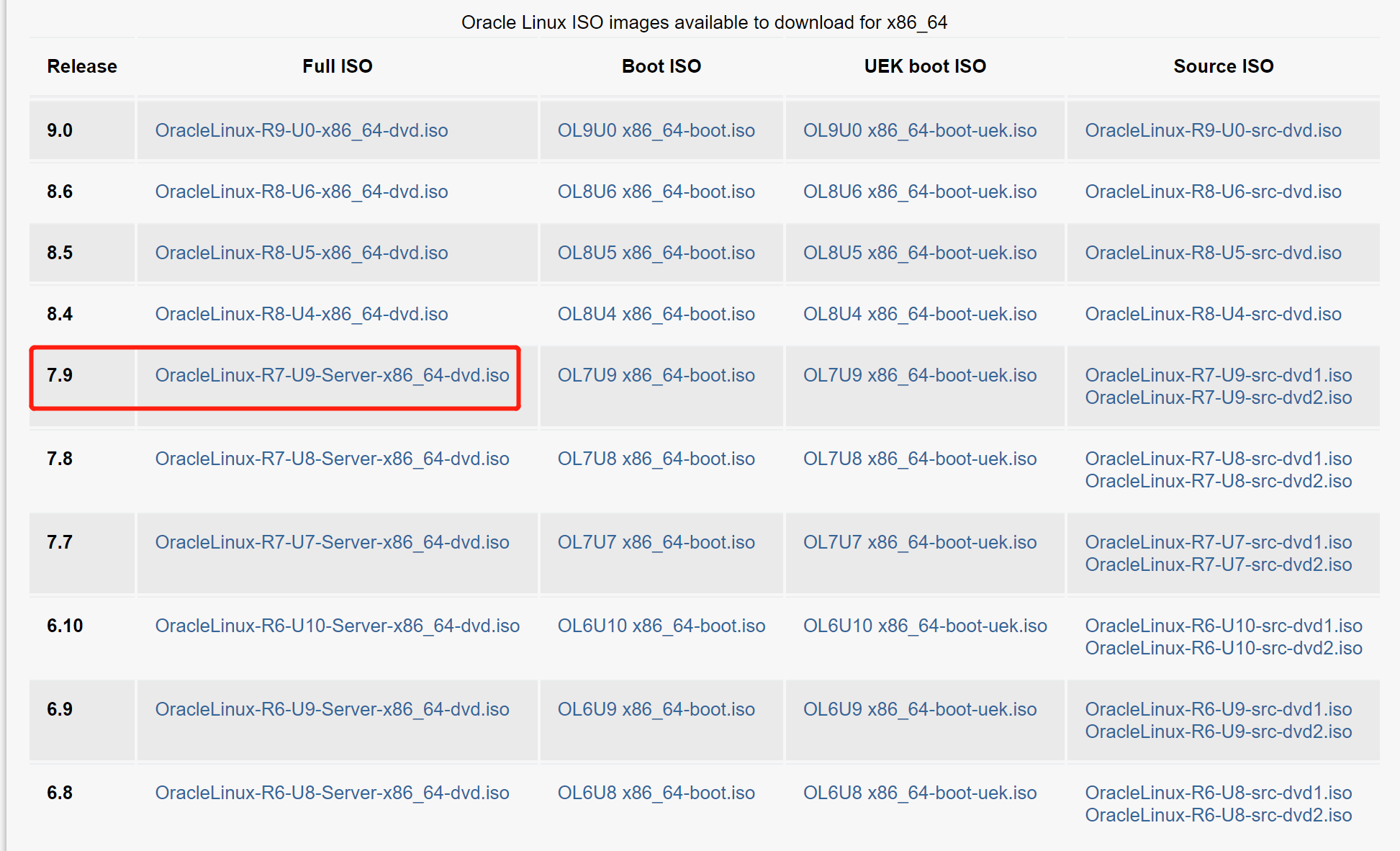 进入镜像文件之后,可以选择需要安装的版本,这里选择7.9的版本进行下载。