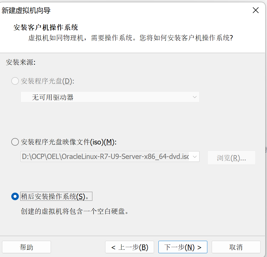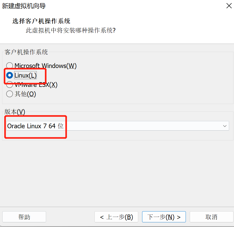 选择客户机操作系统为Linux,选择版本为Oracle Linux 7 64位,下一步