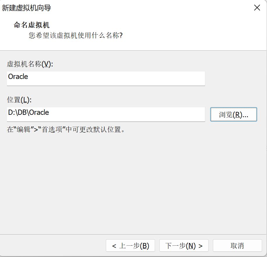 虚拟机名称可以自定义,这里定义为Oracle,位置也可以自定义,可以定义在磁盘空间比较大的磁盘上,下一步