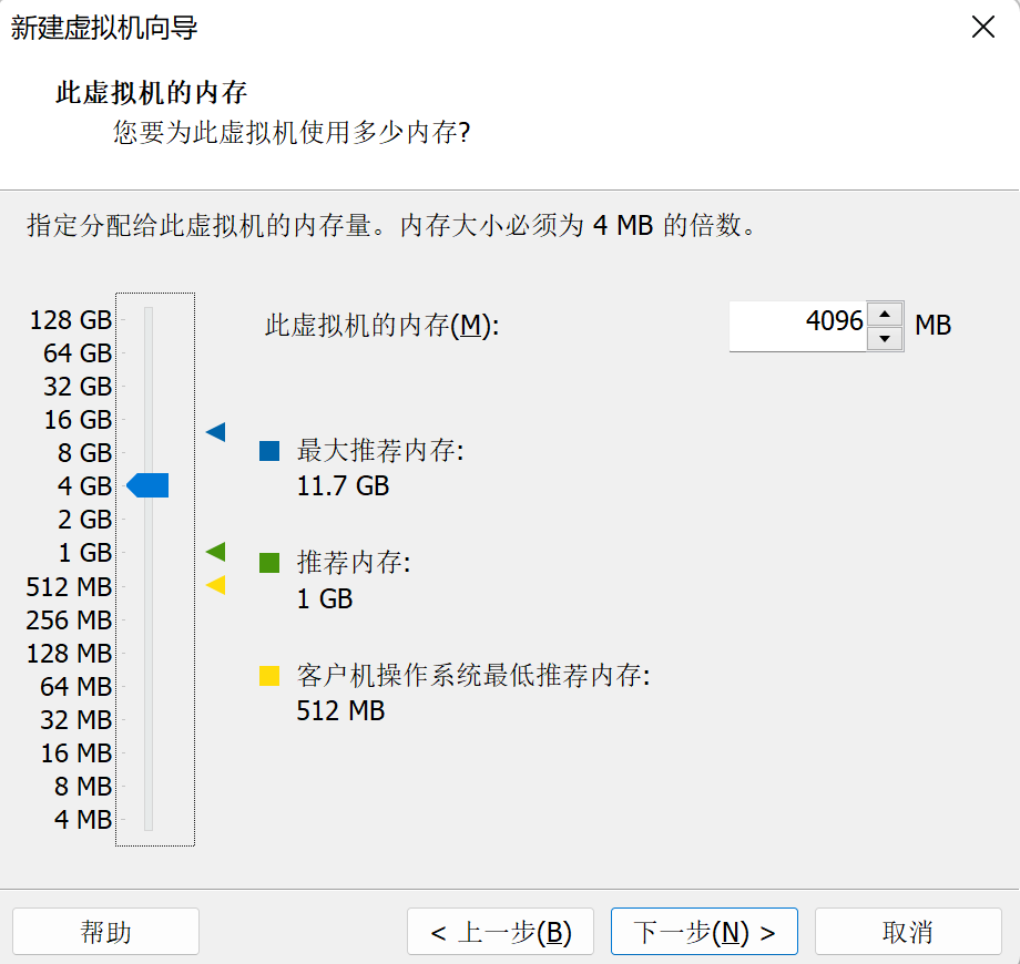虚拟机的内存安装Linux操作系统,可能1GB就足够,但是我们还需要在Linux上安装Oracle,