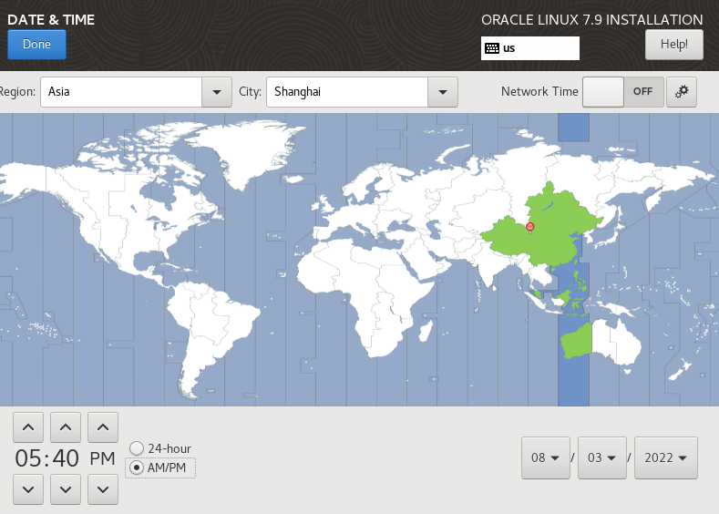 日期时间选择为亚洲 上海,时间可以选择和当前时间一致。