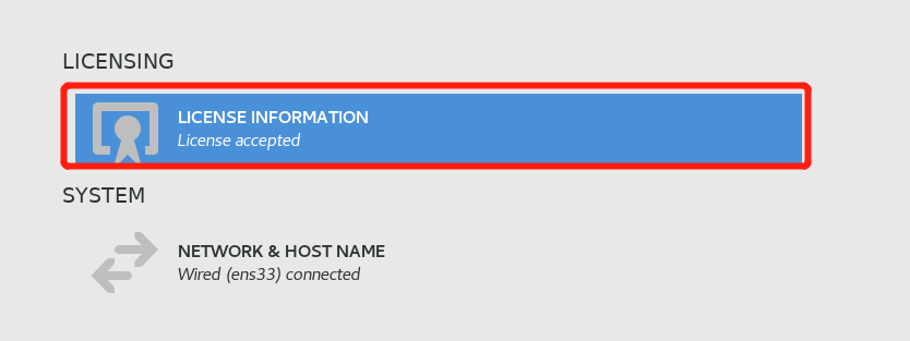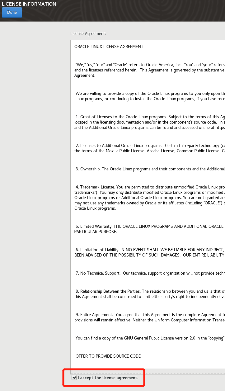 安装完成之后,重启Linux,点击LICENSE INFORMATION,勾选I accept the license agreement.