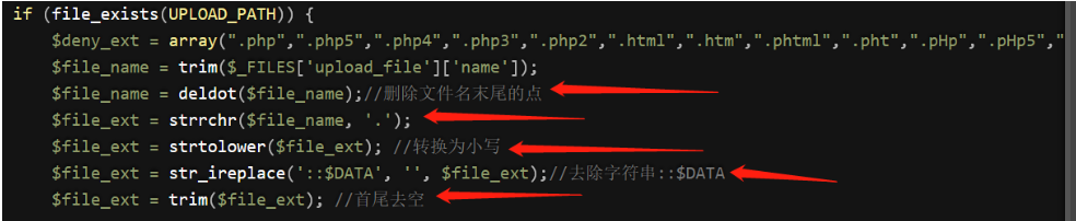 常见的防御措施 :去除末尾的店、文件大小写、去除首尾的空格、去除::$DATA等