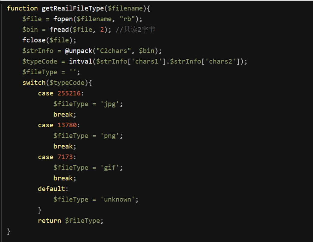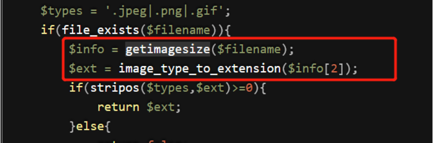 该函数会对上传图片进行二次渲染,上传后我们加载gif后面的一句话代码会被渲染掉,对于这样的方式我们要寻找到渲染前后两个文件相同的地方,在相同的地方里面插入我们想要的代码,例如文件的开头。对于其他如png、jpg格式的格式比较麻烦,用下列代码
