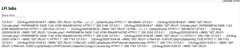 利用思路:我们写一句话木马进行访问,访问后会在日志文件留下痕迹,然后我们在包含日志文件执行一句话木马