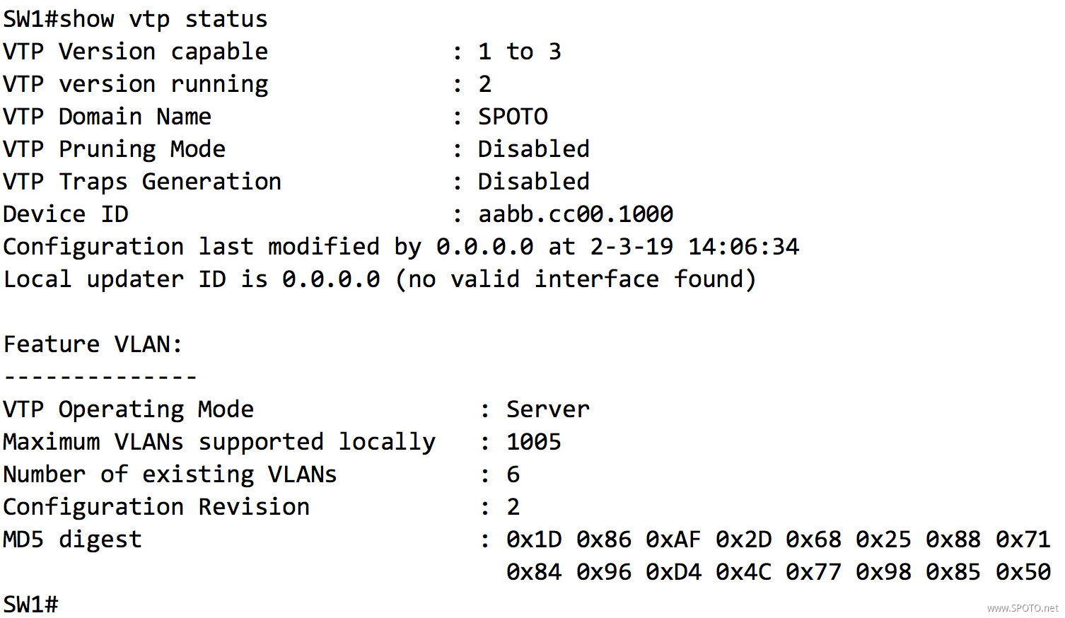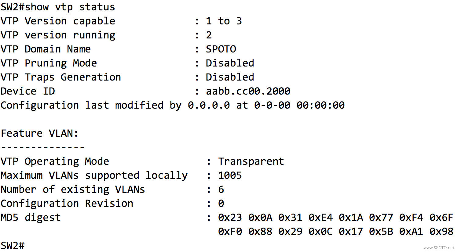 MD5 digest部分,如果此部分完全一致,则表示VTP已经同步
