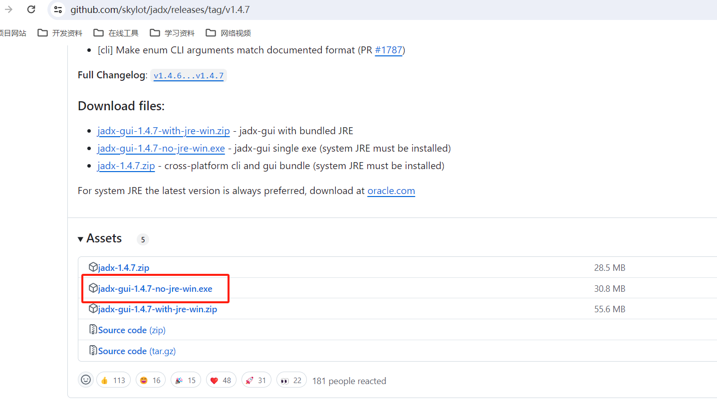 下载地址:https://github.com/skylot/jadx/releases/tag/v1.4.7