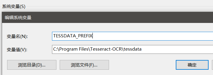 在系统变量中添加变量TESSDATA_PREFIX