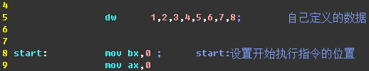 因把自定义数据放在了指令所在内存,所以要自己制定指令开始执行的位置。