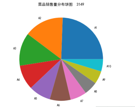 import pandas as pd import matplotlib.pyplot as plt #导入绘图包 plt.rcParams['font.sans-serif'] = ['SimHei'] #解决中文显示问题 plt.rcParams['axes.unicode_minus'] = False # 解决中文显示问题 url = r"E:\py mathph\JupyterLab-Portable-3.1.0-3.9\shujuwajue\data\catering_dish_profit.xls" data = pd.read_excel(url) #饼图 plt.figure(figsize=(6,6))#将画布设定为正方形,则绘制的饼图是正圆 plt.pie(data['盈利'], labels=data['菜品名']) plt.title('菜品销售量分布饼图 3149') #加标题 plt.show() #条形图 plt.figure(figsize=(8,4)) plt.bar(data['菜品名'],data['盈利']) plt.xlabel('菜品') plt.ylabel('销量') plt.title('菜品销售量条形图 3149') #加标题 plt.show()