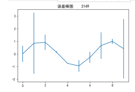 #绘制误差棒图 import matplotlib.pyplot as plt plt.rcParams['font.sans-serif']=['SimHei'] plt.rcParams['axes.unicode_minus']=False import numpy as np import pandas as pd error=np.random.randn(10) #定义误差列 y=pd.Series(np.sin(np.arange(10)))#均值数值列 y.plot(yerr=error) #绘制误差图 plt.title('误差棒图 3149') plt.show()