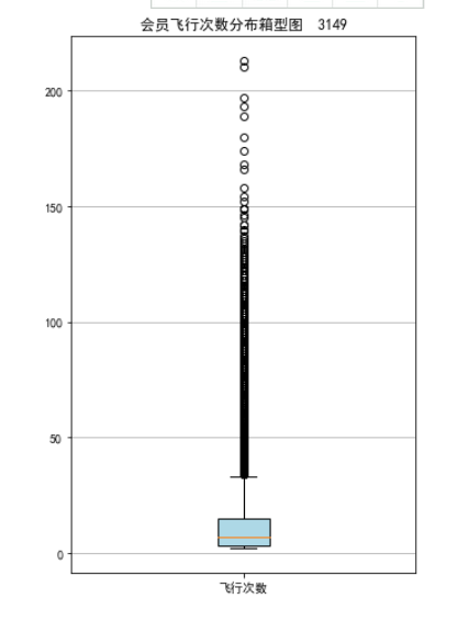 #7-3 lte=data['LAST_TO_END'] fc=data['FLIGHT_COUNT'] sks=data['SEG_KM_SUM'] fig=plt.figure(figsize=(5,8)) plt.boxplot(lte, patch_artist=True, labels=['时长'], boxprops={'facecolor':'lightblue'}) plt.title('会员最后乘机至结束时长分布箱型图 3149') plt.grid(axis='y') plt.show() plt.close fig=plt.figure(figsize=(5,8)) plt.boxplot(fc, patch_artist=True, labels=['飞行次数'], boxprops={'facecolor':'lightblue'}) plt.title('会员飞行次数分布箱型图 3149') plt.grid(axis='y') plt.show() plt.close fig=plt.figure(figsize=(5,10)) plt.boxplot(sks, patch_artist=True, labels=['总飞行公里数'], boxprops={'facecolor':'lightblue'}) plt.title('客户总飞行公里数箱型图 3149陈坤宗') plt.grid(axis='y') plt.show() plt.close