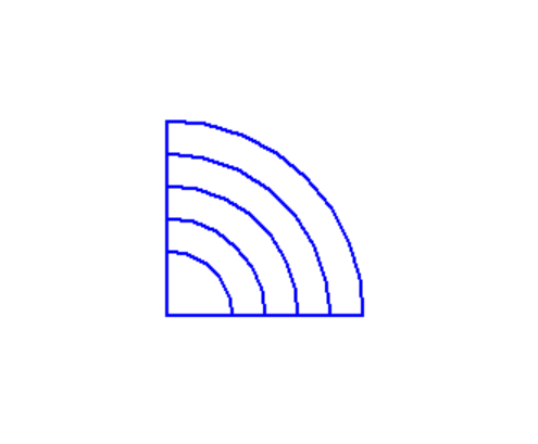 1 from turtle import * 2 3 pensize(2) 4 pencolor('blue') 5 6 def main(): 7 for i in range(5): 8 fd(40+20*i) 9 left(90) 10 circle(40+20*i,90) 11 left(90) 12 fd(40+20*i) 13 left(90) 14 15 hideturtle() 16 done() 17 18 main()