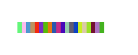 1 from turtle import * 2 from random import random 3 4 def moveto(x,y): 5 penup() 6 goto(x,y) 7 pendown() 8 9 def gen_color(): 10 return tuple(random() for i in range(3)) 11 12 def square(): 13 color(gen_color()) 14 begin_fill() 15 for i in range(2): 16 fd(10) 17 left(90) 18 fd(25) 19 left(90) 20 end_fill() 21 22 setup(800,600) 23 24 moveto(-50,0) 25 for i in range(20): 26 square() 27 fd(10) 28 29 hideturtle() 30 done()