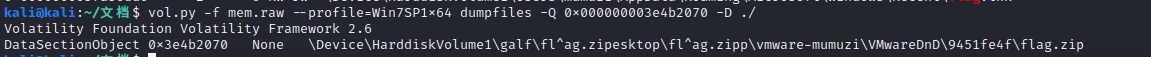 vol.py -f mem.raw --profile=Win7SP1x64 dumpfiles -Q 0x000000003e4b2070 -D ./