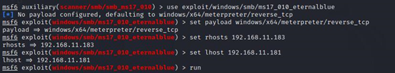 4.设置被攻击设备IP” set rhosts 192.168.11.183”