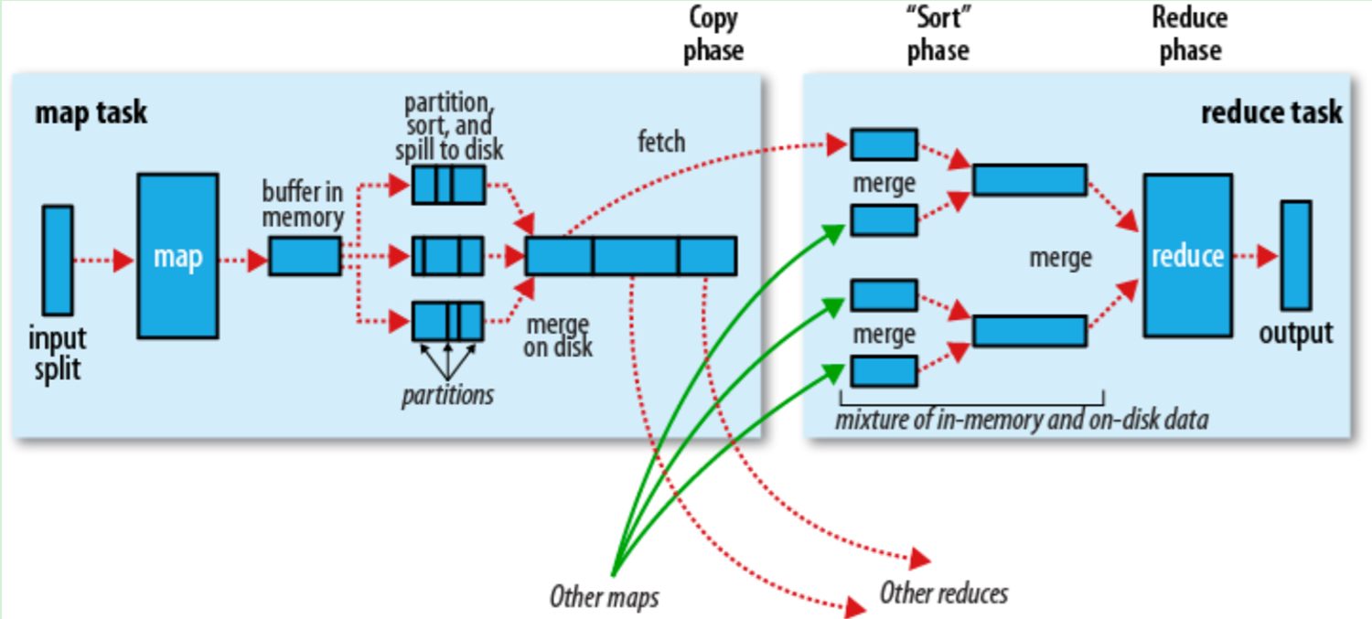 当Map过程和shuffle过程真正结束的时候,reducetask才开始reduce过程,最后将结果输出至HDFS。