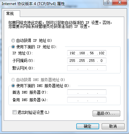 打开网络和共享中心(win7)-更改适配器配置-选择VirtualBox Host-only Network-右键-属性-IPv4,设置例如以下: