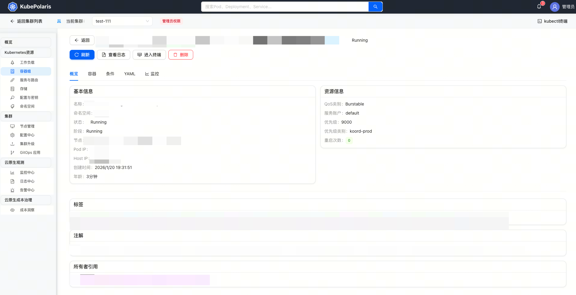 - **节点管理**:Cordon、Drain、污点管理,点点鼠标即可完成。