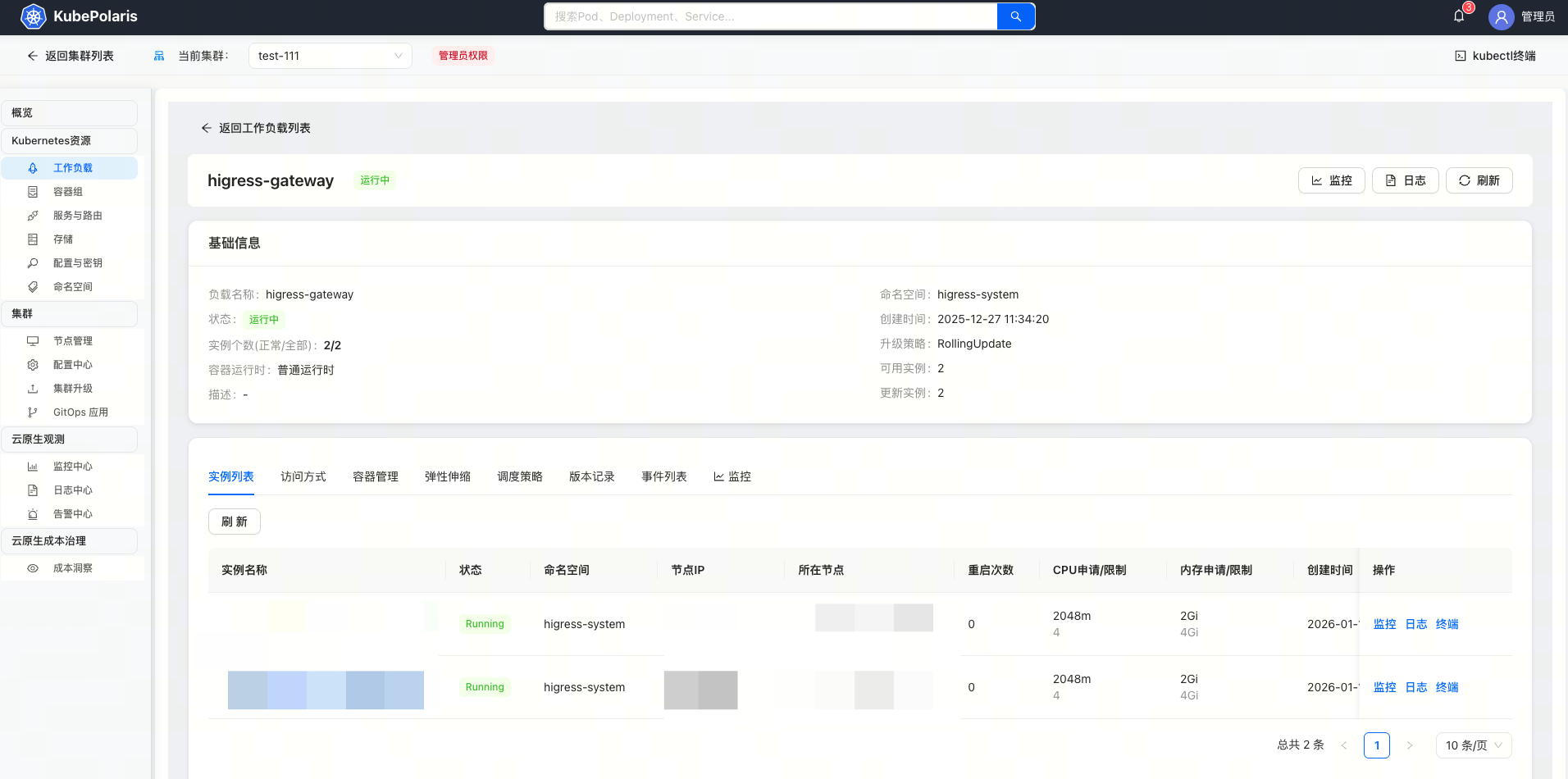 | 集群概览 | 工作负载管理 |