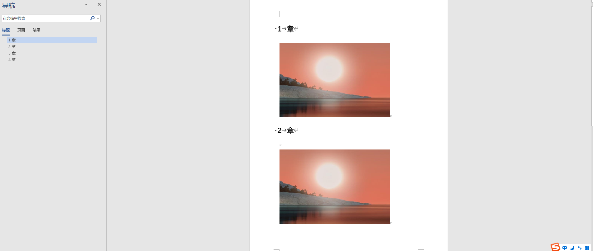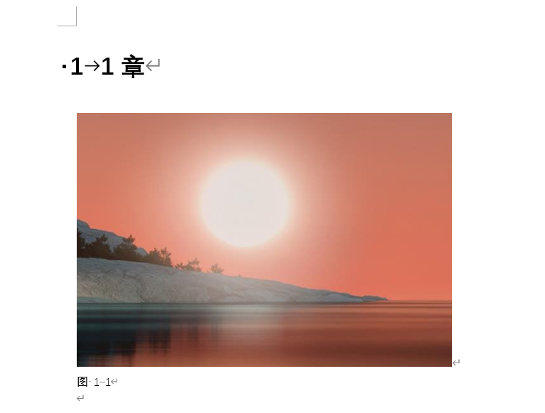 1)新建一个Word,建立“标题1”样式4章,每章插入1个图,每个章标题前用自动编号,编 1 2 3 4.自动编号不要含有中文,否则会造成题注编号章号是中文:图一.1