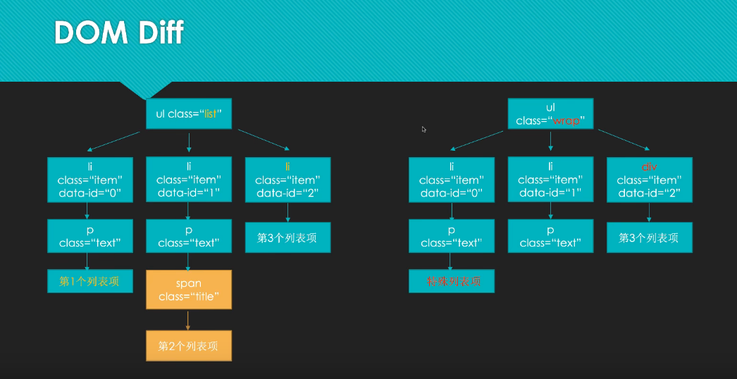 1.对比两个虚拟节点,找出差异,再对应到真实DOM ,进行补丁;