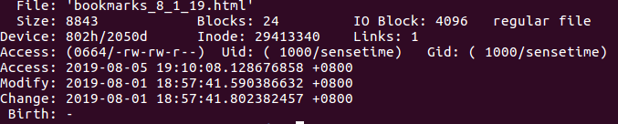 2) stat #查看文件信息,包括索引节点、访问时间、修改时间等