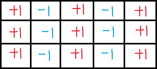 为了让每个格子的\(r_i\)和\(c_j\)的正负性相反,可以改变一下,把奇数行和偶数列的操作取反,改成-1,+1,-1,+1...