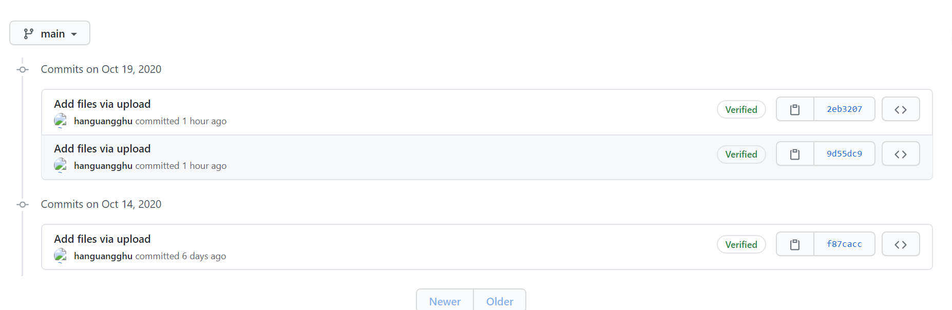 2.2贴出Github的代码签入记录,合理记录commit信息: