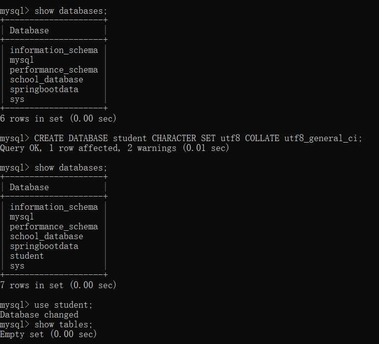 1、创建数据库students ,字符集UTF8 排序规则 utf8_general_ci