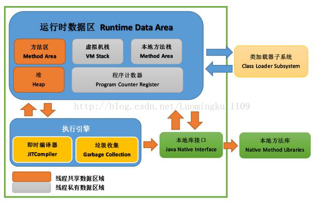 一个垃圾回收,堆和一个存储方法域。 JVM 是运行在操作系统之上的,它与硬件没有直接
