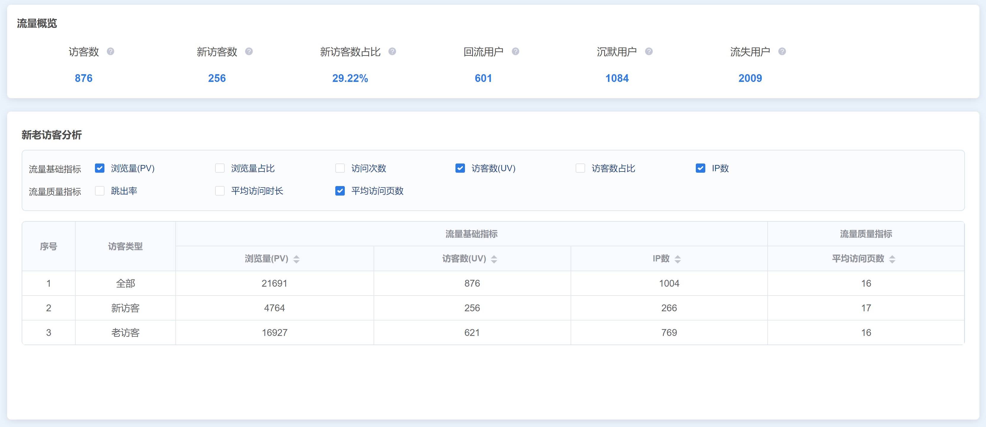 4. 新老访客分析:ClkLog能够区分新访客和回访客户,为运营团队提供关键洞察,以制定针对性的用户留存策略和新用户吸引计划。