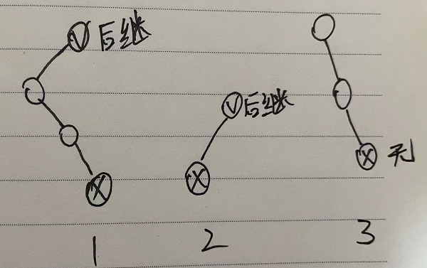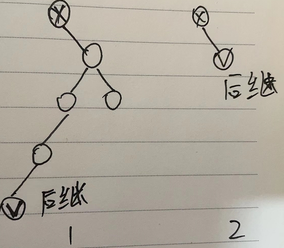 1)当前节点没有右子树,然后直到 某个节点是父节点的左孩子。那么它的后继节点就是 当前父节点