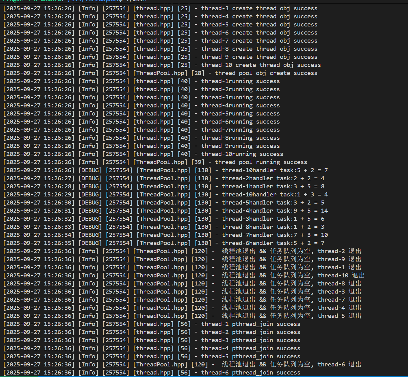 我们仅需要把ThreadPool.hpp文件重写一下即可,加入单例的代码~