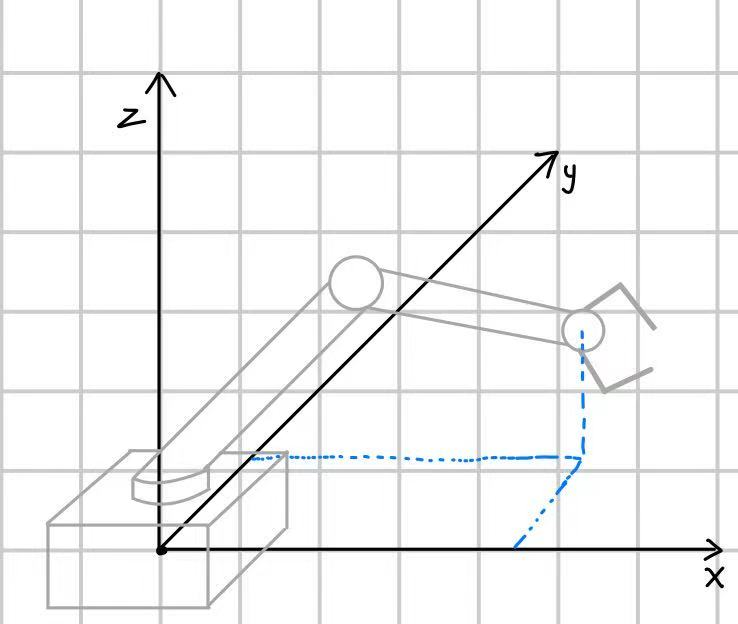 | 目标坐标 | (X=400mm, Y=0mm, Z=400mm) | 末端需到达的位置(Y=0 表示在 X 轴正方向) |