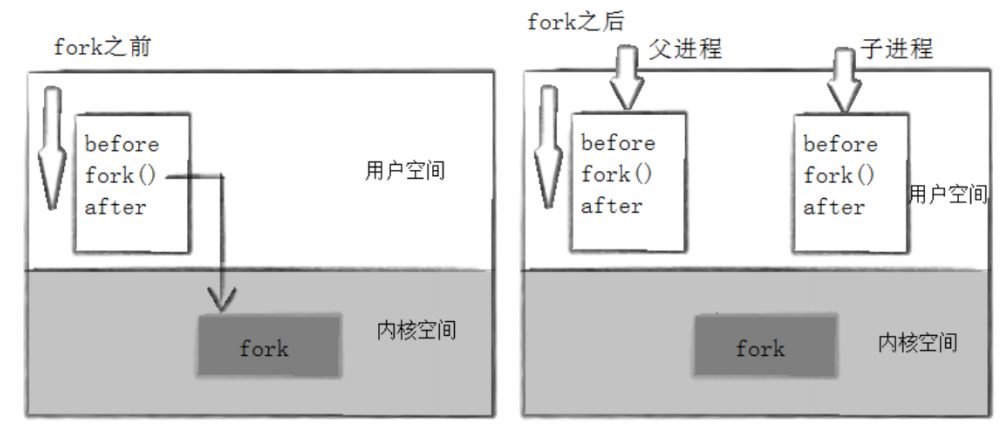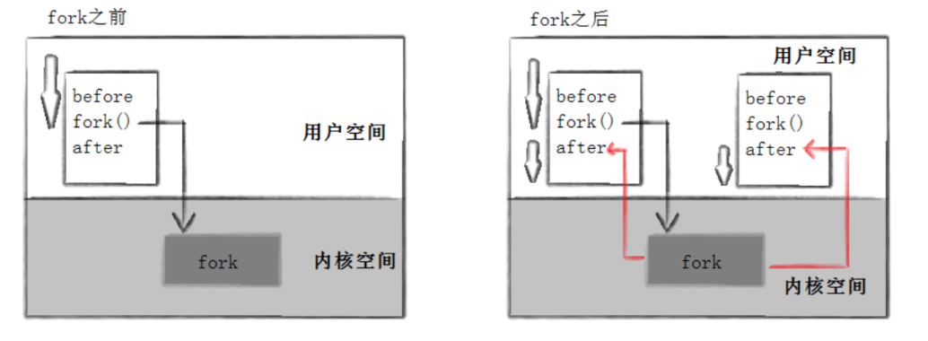 当一个进程调用fork之后,就会有两个二进制代码相同的进程。而且它们都运行到相同的地方。但每个进程都将可以开始自己的旅程。