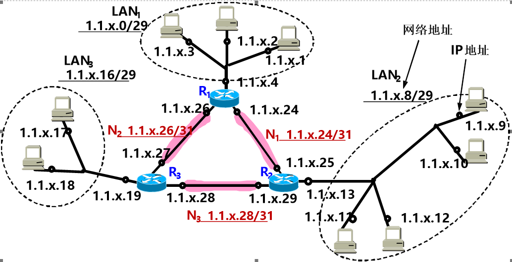 LAN3主机:1.1.X.16网络号:1.1.X.16网关1.1.x.19