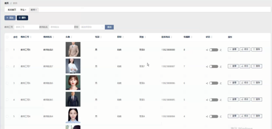 教师管理(工号、职称、履历、联系电话、状态)