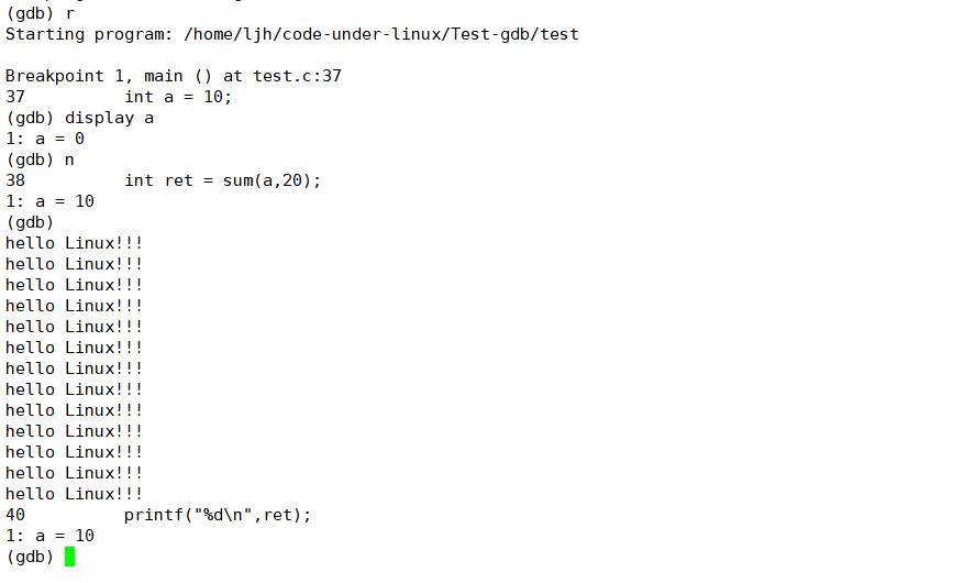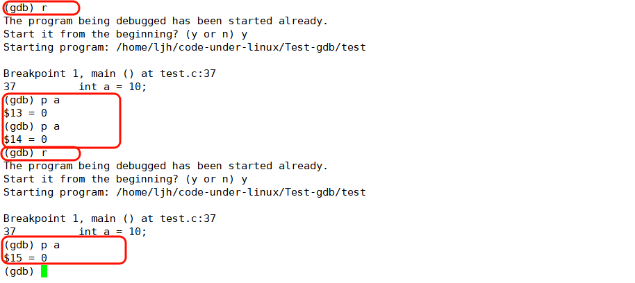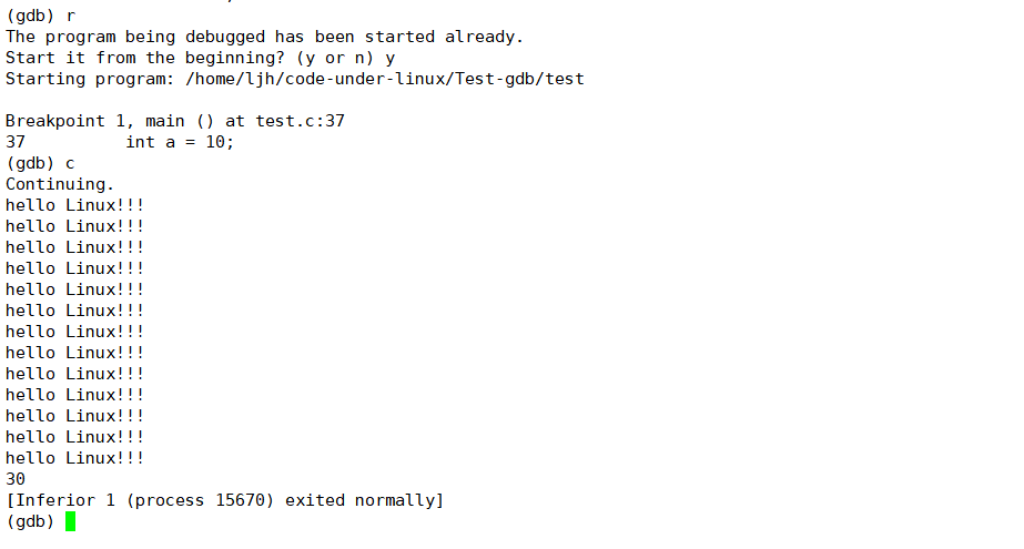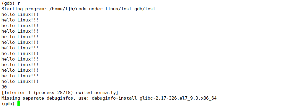 注意:gbd会默认记录最近一次的指令,可以回车执行最近一次指令。