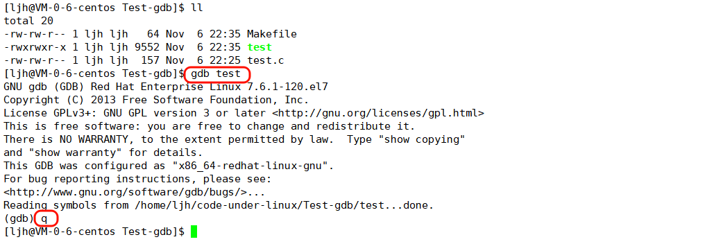 - 退出gdb指令:quit(q) 或者 ctrl + d