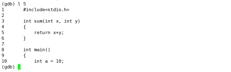 这个时候想要再从头看可以输入l 0,一般从头开始的话,只输输入 l的话会自动输出10行