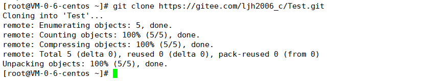 Test仓库此时就在我们的当前目录下,大家使用时尽量放在普通用户下,我这只是示范,所以就没有切换用户了。