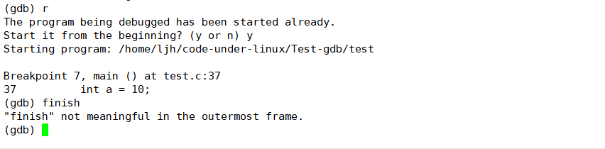 - finish:执行到当前函数返回,然后停下来等待命令。