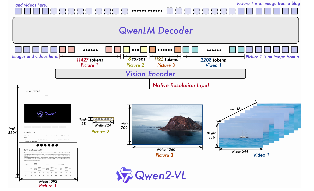 Qwen2-VL系列通过其创新的动态分辨率、M-RoPE和统一架构,实用地克服了当前LVLM在感知细节、处理多模态位置信息和理解动态内容方面的核心痛点。它不仅在各种基准测试中确立了新的性能标杆,更通过强大的多语言支撑、长视频理解和智能体能力,展现了其作为下一代多模态基础模型的巨大潜力。