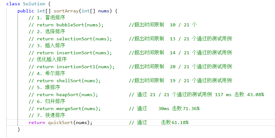 以下代码均通过了这道题 912. 排序数组 - 力扣(LeetCode) ,代码质量是可以保证的。