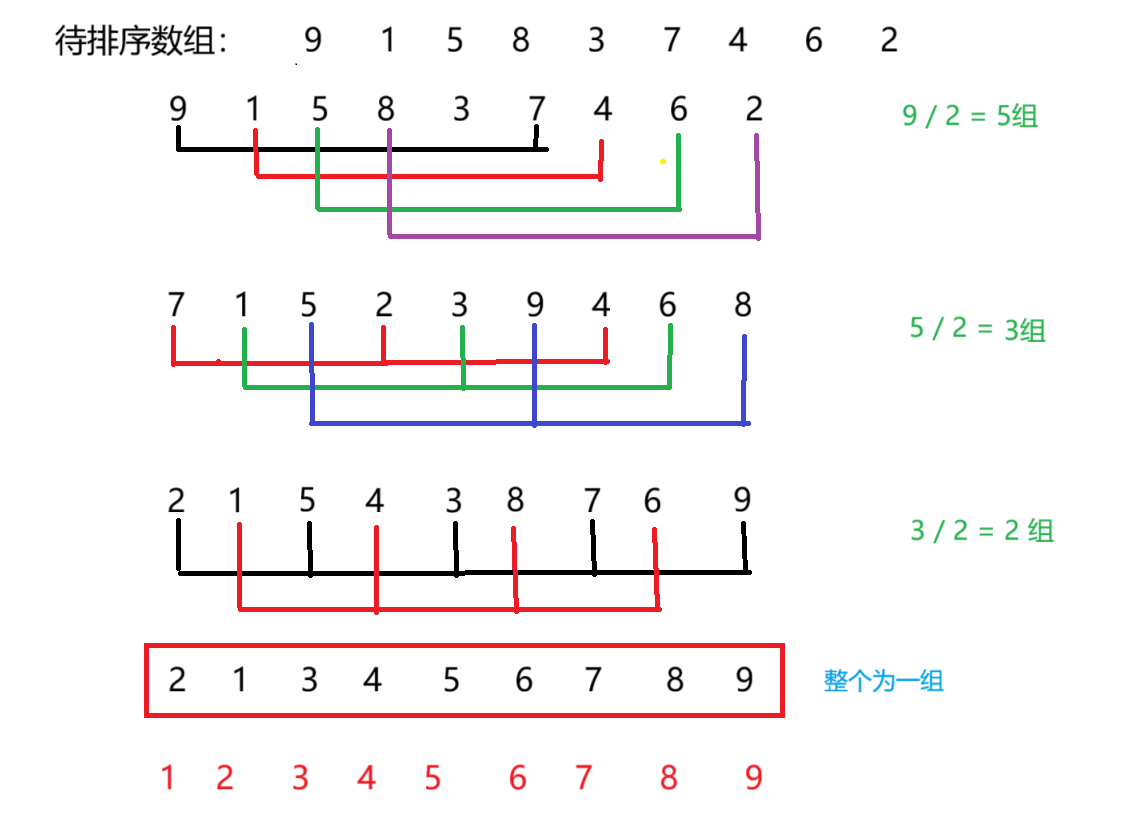 * 对于希尔排序我更喜欢称它为:分组排序,组内插入排序